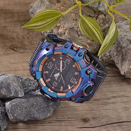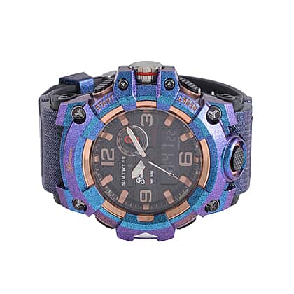 GENOA Time V2 Dual Japanese Movement Black Dial Gold Scale 5 ATM Water Resistant Watch With Blue Stainless Steel & Leatherette Strap