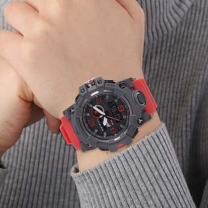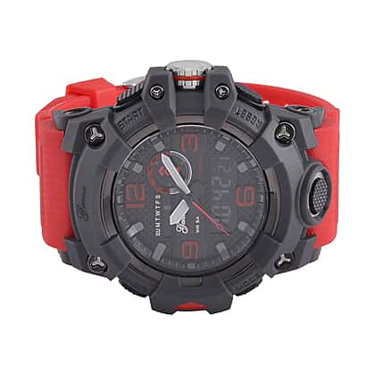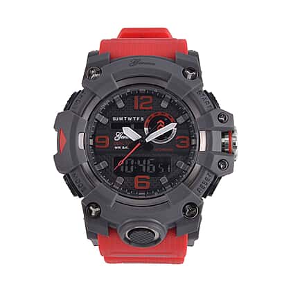 GENOA Time V2 Dual Japanese Movement Black Dial Grey Scale 5 ATM Water Resistant Watch With Red Stainless Steel & Leatherette Strap