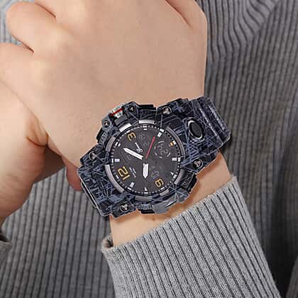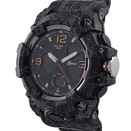 Stay ahead of time with the GENOA TIME V2 Japanese Men’s Watch. Featuring a sleek black dial, this watch offers both style and functionality with its multifunctional design. The camouflage strap adds a modern touch, while the LED display provides easy readability. Powered by the reliable PC21S Japan movement, this watch includes time, week, date, stopwatch, alarm clock, and night light functions. With 5ATM water resistance, it's perfect for daily wear. The stainless steel buckle and back ensure long-lasting use, making this watch a practical addition to your collection.