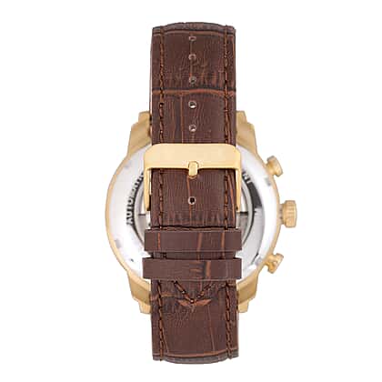 HERITOR Automatic Arthur Sapphire-Coated Mineral Crystal Semi-Skeleton White Dial Gold Casing 10 ATM Water Resistance with Brown Genuine Leather Crocodile-Embossed Strap