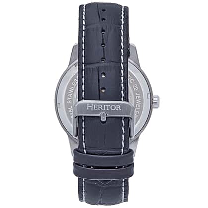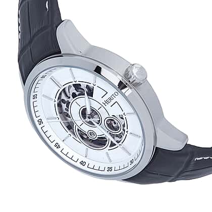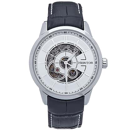 Heritor Automatic Davies White Analog Dial 5 ATM Mens Watch in Black Genuine Leather Strap