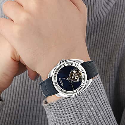 This watch is not just a timepiece but a statement of style and precision engineering. From the Roman Collection by Heritor, this watch showcases an automatic movement that captures the essence of watchmaking heritage. The navy genuine leather strap provides a sophisticated touch, making it versatile for all occasions. With a 5 ATM water resistance, this watch comfortably handles water encounters up to 50 metres deep. The classic design features a transparent back, allowing a peek into the intricate workings of its mechanics.