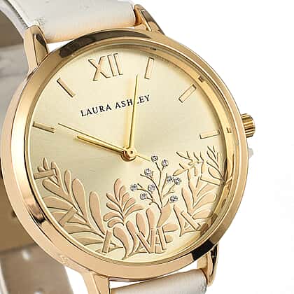 Step into timeless elegance with the Laura Ashley Women's 35mm Owain Diamond Dial Strap Watch. This stunning timepiece features a shimmering diamond-accented dial, exuding luxury and refinement. The 35mm stainless steel case adds durability, while the genuine leather strap ensures comfort and style. With precise quartz movement, this watch is a fashionable accessory and a reliable companion for every occasion. Elevate your look with this exquisite piece of artistry.