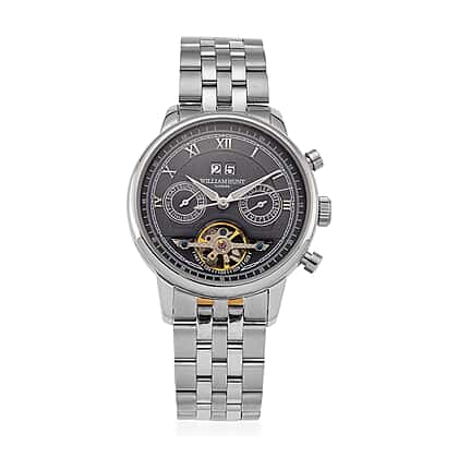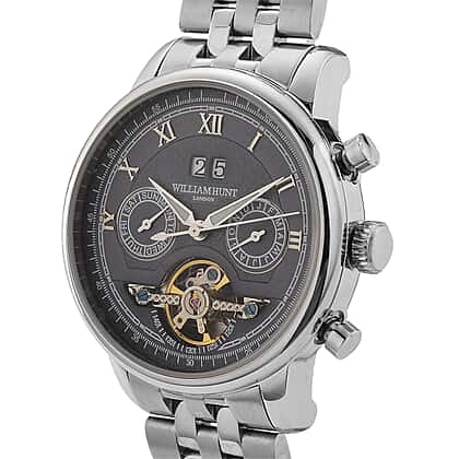 Limited Edition WILLIAM HUNT LONDON Automatic Movement 5 ATM Water Resistant Watch With Skeleton Display, Exhibition Back & Bracelet Strap With Day, Date, Month Display Presented in a Gift Box