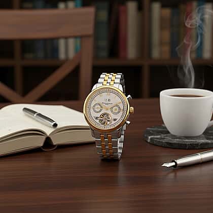 Limited Edition WILLIAM HUNT LONDON Automatic Movement 5 ATM Water Resistant Watch With Skeleton Display, Exhibition Back & Bracelet Strap With Day, Date, Month Display Presented in a Gift Box