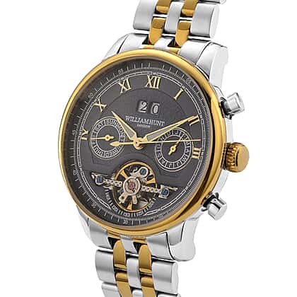 Limited Edition WILLIAM HUNT LONDON Automatic Movement 5 ATM Water Resistant Watch With Skeleton Display, Exhibition Back & Bracelet StrapWith Day, Date, Month Display Presented in a Gift Box