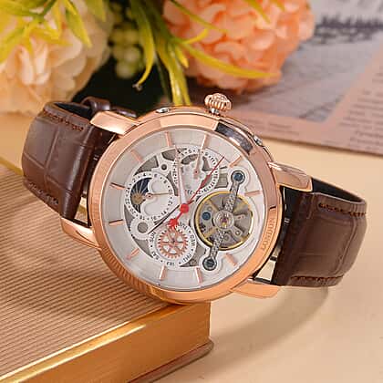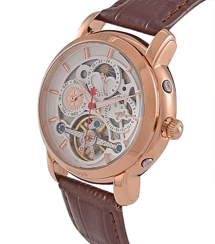 LIMITED EDITION William Hunt London Automatic Movement 5 ATM WR Moon Phase Watch With Brown Leather Strap
