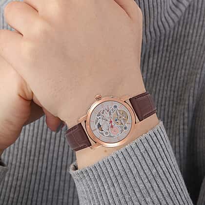 • Brown leather strap for a classic, comfortable fit
