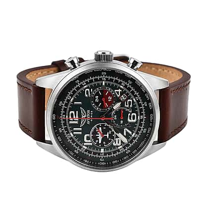 AVIATOR Quartz Movt. 5 ATM Water Resistant Mens Watch with Brown Leather Strap