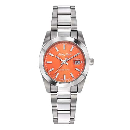 Mathey Tissot Limited Edition Sunray Quartz Movt. 5ATM WR Orange Dial Ladies Watch with Silver Colour Stainless Steel Strap