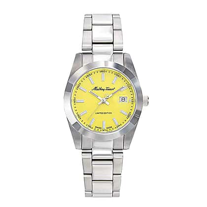 Mathey Tissot Limited Edition Sunray Quartz Movt. 5ATM WR Yellow Dial Ladies Watch with Silver Colour Stainless Steel Strap