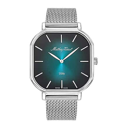 Mathey Tissot Monsoon Square Swiss Movt. 3ATM WR Green Dial Mens Watch with Silver Colour Stainless Steel Mesh Strap