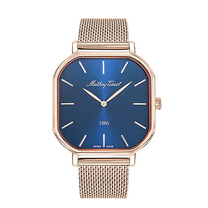 Mathey Tissot Monsoon Square Swiss Movt. 3ATM WR Blue Dial Mens Watch with Rose Colour Stainless Steel Mesh Strap
