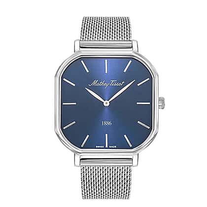 Mathey Tissot Monsoon Square Swiss Movt. 3ATM WR Blue Dial Ladies Watch with Silver Colour Stainless Steel Mesh Strap