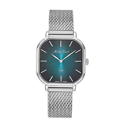 Mathey Tissot Monsoon Square Swiss Movt. 3ATM WR Green Dial Ladies Watch with Silver Colour Stainless Steel Mesh Strap