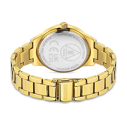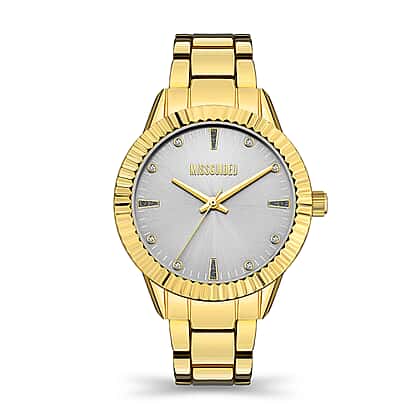 Blend your style with the classic and modern appeal of this Missguided grey dial watch. This luxurious watch brings poise and craftsmanship all into a single look. Featuring the hand set diamonds inside the dial, an iconic pull crown, and a yellow gold colour polish chain strap. Secure the wristwatch on your hand with the deployant clasp lock; it has a quartz 12-hour dial, is light in weight and is water-resistant up to 3ATM. The watch is perfect for everyday wear and is designed to bring out the new you. An ideal style booster for women to flaunt their beauty on every occasion.