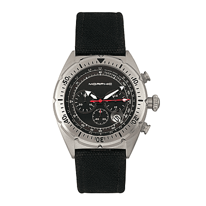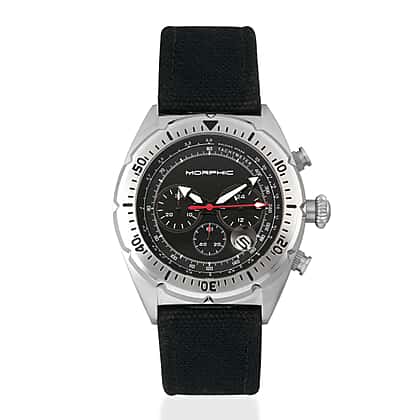 MORPHIC M53 Series Japanese Quartz Movt. 5ATM Water Resistant Black Dial Mens Watch with Black Colour Leather Strap and Silver-Tone Case