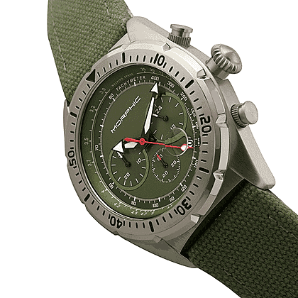 MORPHIC M53 Series Japanese Quartz Movt. 5ATM Water Resistant Green Dial Mens Watch with Green Colour Leather Strap and Silver-Tone Case