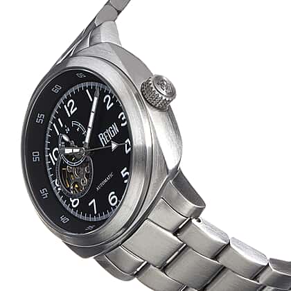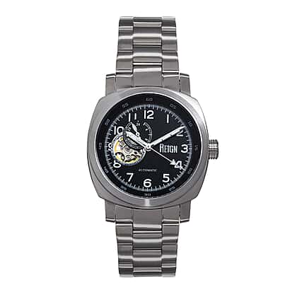 Reign Impaler Automatic Movt. 10ATM WR Black Dial Mens Watch with Silver Colour Stainless Steel Strap