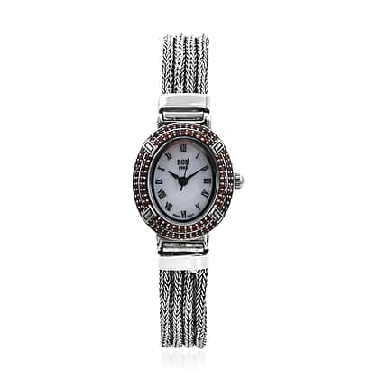 Royal Bali Collection - EON 1962 Swiss Movement Mozambique Garnet Studded Water Resistant Tulang Naga Bracelet Watch (Size 7) in Sterling Silver 1.23 Ct, Silver wt 35.52 Gms