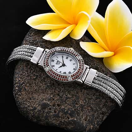 From the Royal Bali Collection, this luxurious sterling silver watch will be your everyday partner. Adorned with 88 Mozambique garnet gemstones to display brilliance and elevate its overall appearance. The eye-catching sterling silver bracelet provides an irritation-free experience while channelling the style you love. The timepiece is crafted from 925 sterling silver to help maintain its new-like finish even after ages.