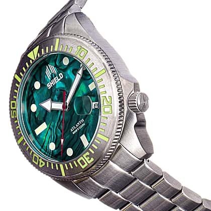 Shield Atlantis Automatic Movt. 20ATM Water Resistance Teal Dial Mens Watch with Silver Colour Stainless Steel Strap
