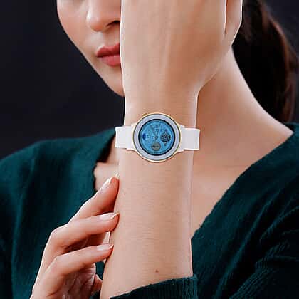 Smart Watch - Multi Face, with Steps, Sleep, Heart Rate, Blood, Spo2. Blue Literal Dial and White Silicone Strap