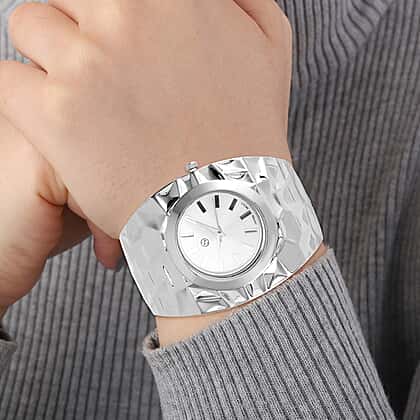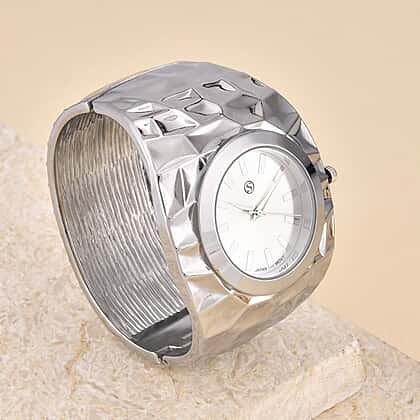 LIMITED EDITION- Designer Inspired Japanese Movt. Water Resistant Hinged Cuff Bangle Silver Colour Watch With Gift Box