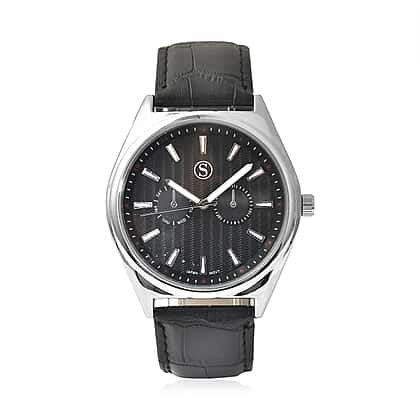 STRADA Japanese Movement Black Dial Water Resistant Watch with Black Colour Strap