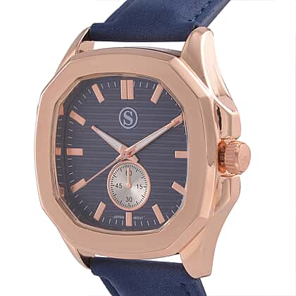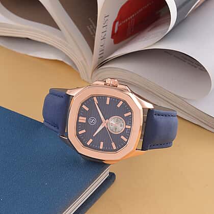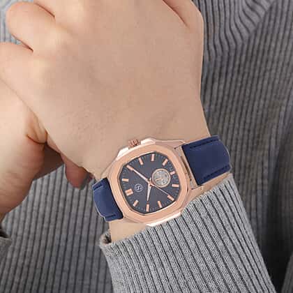 STRADA Japanese Movement Blue Dial Water Resistant Watch with Stainless Steel Back in Rose Gold Tone