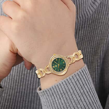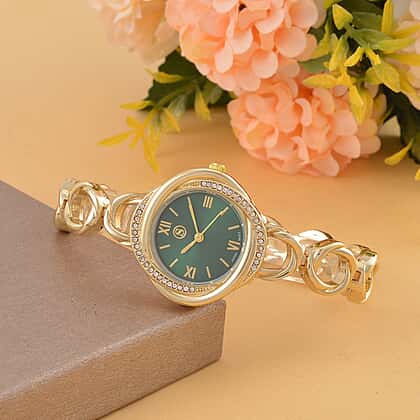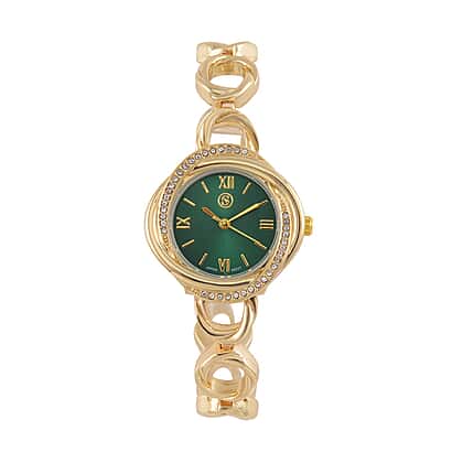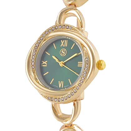 STRADA Japanese Movement Crystal Studded Green Dial Water Resistant Watch in Gold Tone
