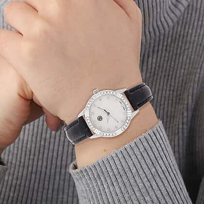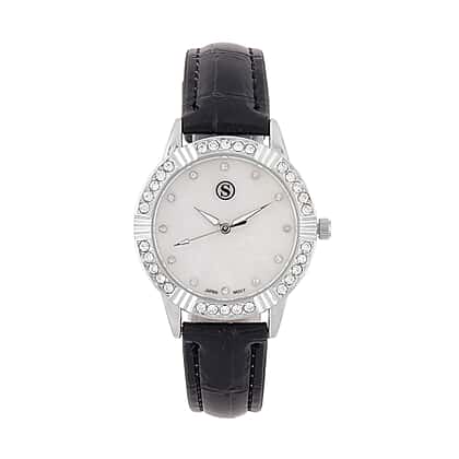 STRADA Japanese Movement Crystal Studed Water Resistant Stainless Steel Watch with Black Strap