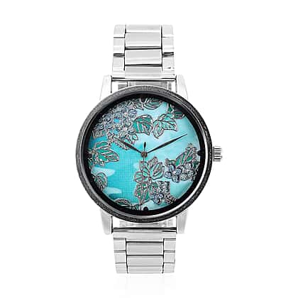 STRADA Japanese Movement Leaf Pattern Dial Water Resistant Watch with Silver Colour Chain Strap