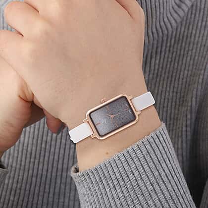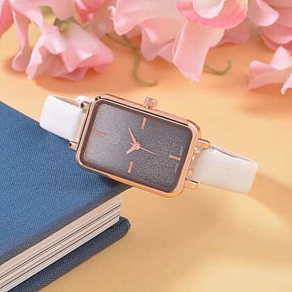 STRADA Japanese Movement White Stardust Dial Water Resistant Ladies Watch With White Leatherette Strap