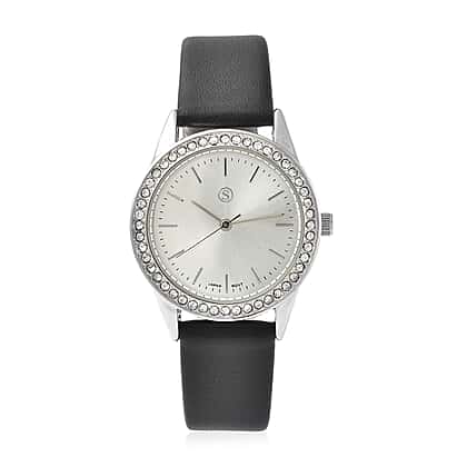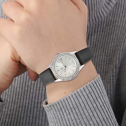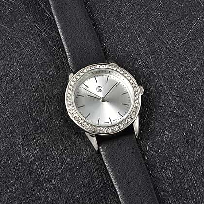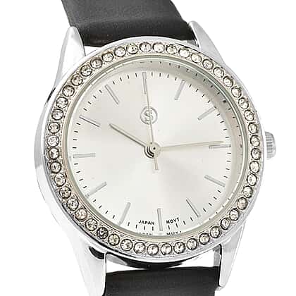 STRADA Japanese Movement Silver Dial Crystal Studded Water Resistant Watch with Black Colour Strap