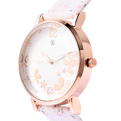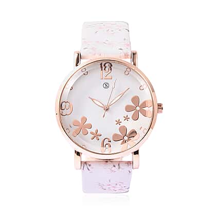 STRADA Japanese Movement Water Resistant Floral Motif Adorned Watch - White