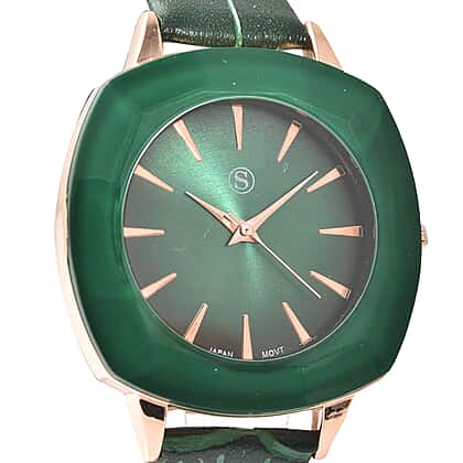 STRADA Japanese Movement Water Resistant Watch with Green PU Strap - Green