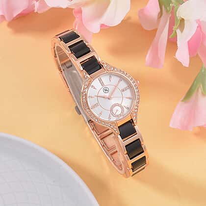 STRADA Japanese Movement Crystal Studded Water Resistant Watch with Alloy Strap and Stainless Steel Back in Rose Gold Tone