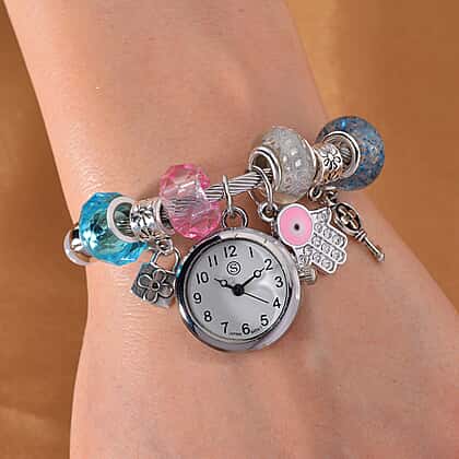 Transform your wrist into a canvas of creativity with the STRADA Charm Bracelet Watch. This delightful timepiece boasts a white dial featuring easy-to-read numbers, making it a practical choice for everyday wear. What sets it apart is the playful assortment of colourful glass and enamel charms, including fun motifs like keys and hearts, which add a vibrant twist to any outfit. With reliable Japanese movement for precise timekeeping and a water-resistant design, you can wear it confidently during daily activities. Whether you’re dressing up for an event or adding a playful touch to your casual attire, this watch perfectly expresses your unique style.