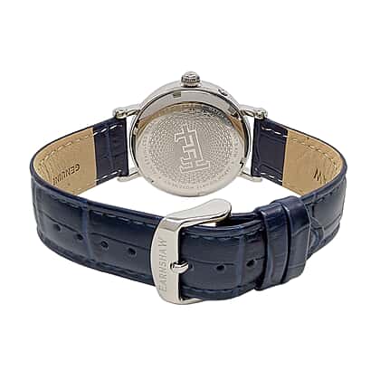 Thomas Earnshaw Messier Moonphase Calendar Mens Japanese Quartz Movement Silver Case 5 ATM Water Resistant Watch with Blue Leather Strap