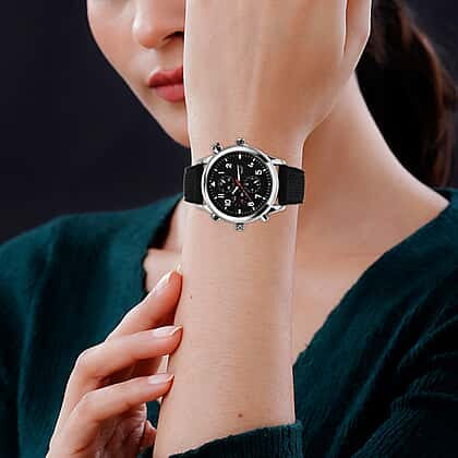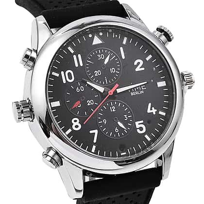 Time Berlin Camera Watch - with Camera and Microphone, 4GB Internal Memory in Stainless Steel - Black strap