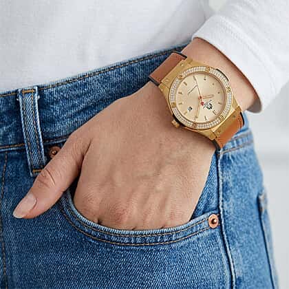 - Moissanite set dial adds a refined brilliance with a distinctive finish