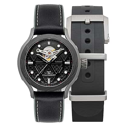 VILLEMONT Limited Edition Mens Tenacity Swiss Movement Granite Black Dial 20ATM Water Resistant Mens Watch with Black Rubber/leather Strap and Black FKM Rubber Strap