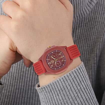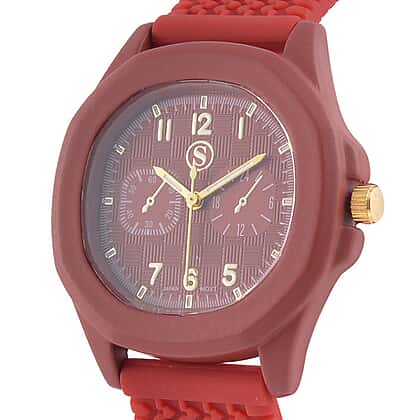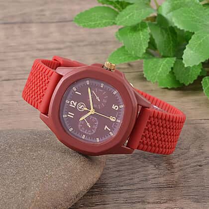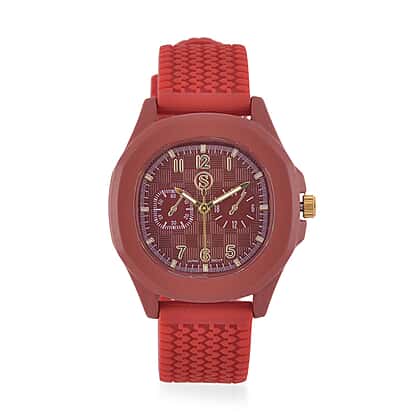 STRADA Japanese Movement Red Analog Watch With Leather Strap and Buckle Fastening