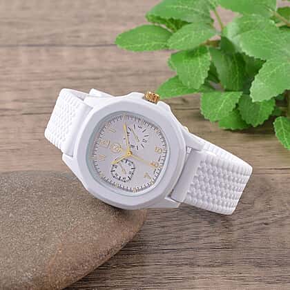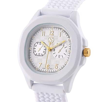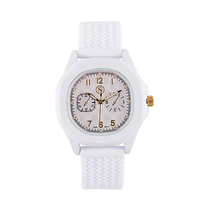 STRADA Japanese Movement Analog Watch With White Silicone Strap