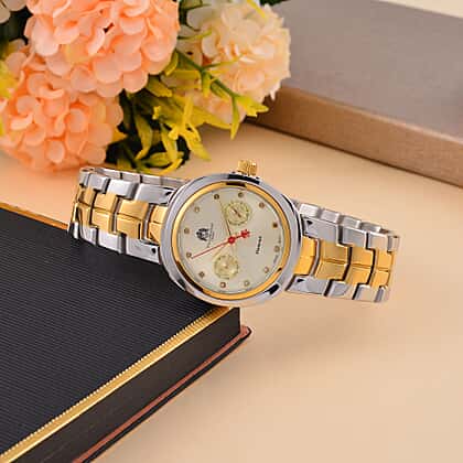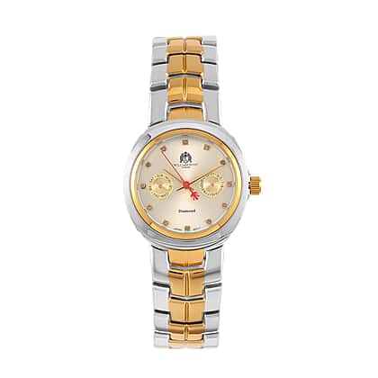 William Hunt - Champagne Diamond Studded Japan Movt. 5ATM WR Watch with Dual Tone Stainless Steel Chain Strap