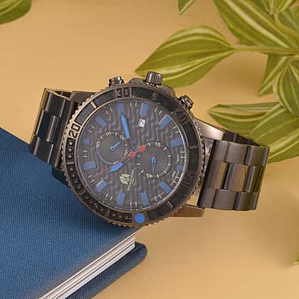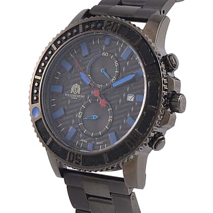 WILLIAM HUNT Designer Multifunction Chronograph Movt. rotating Bezel 45 mm Dial Water resistant stainless steel Watch in Black