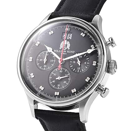 WILLIAM HUNT Japanese Movement Water Resistance Watch in Stainless Steel with Black Leather Strap