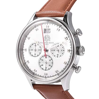 WILLIAM HUNT Japanese Movement Water Resistance Watch in Stainless Steel with Tan Leather Strap