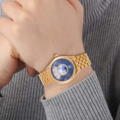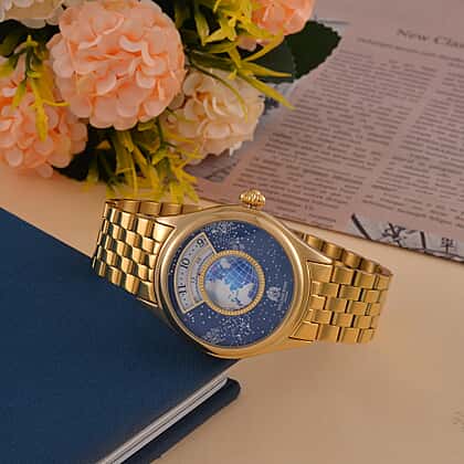 William Hunt Limited Edition Constellation Automatic Watch With Rotating Globe Presented in a Gift Box - Gold
